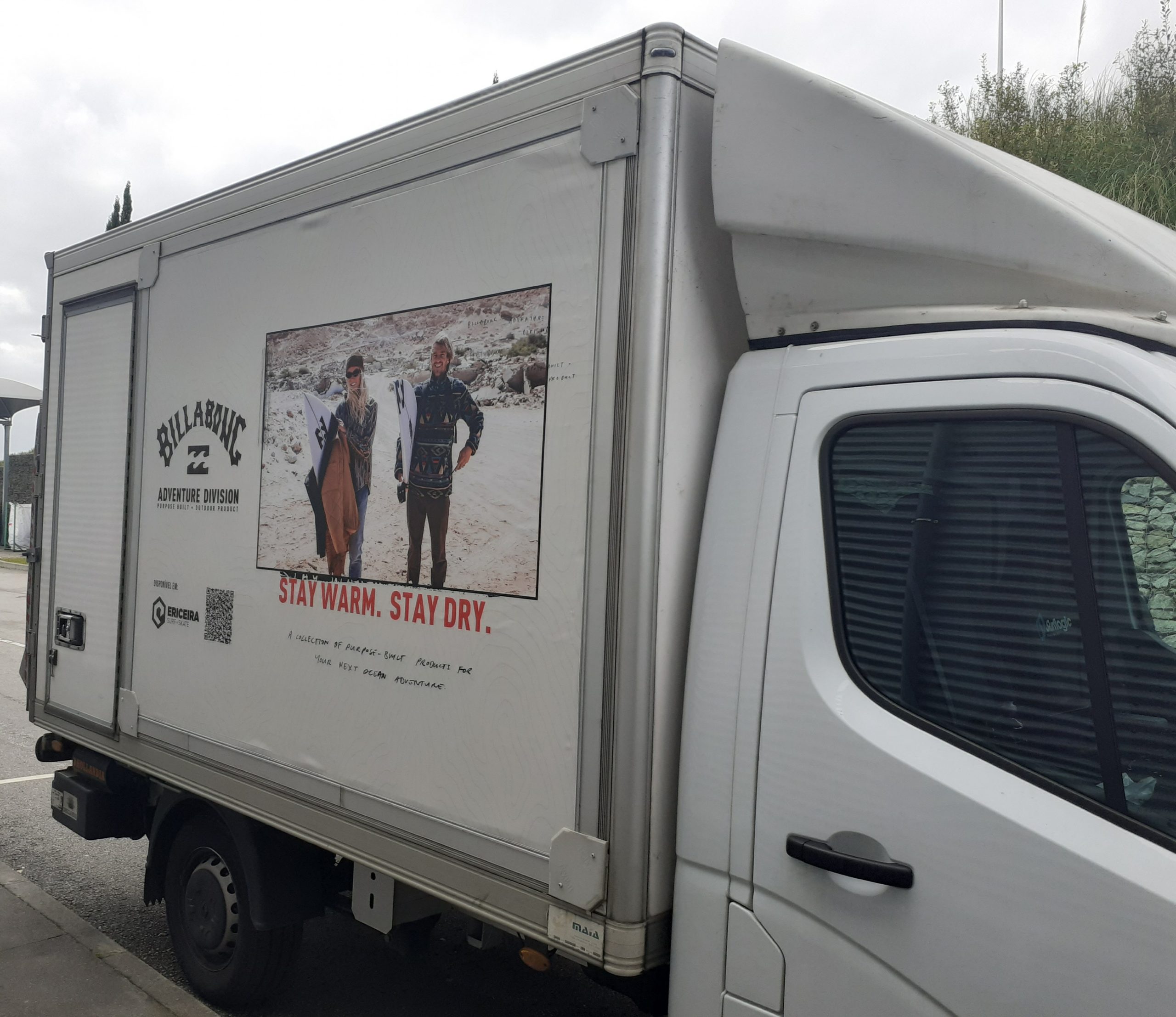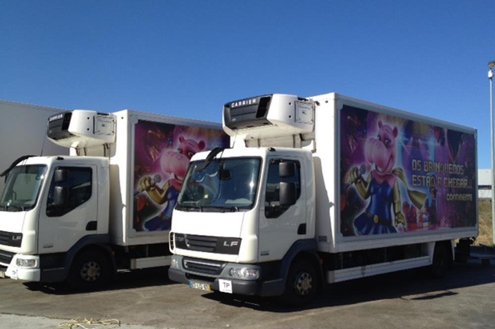 Instalação do sistema Traxx ™ em mais 35 viaturas da sua frota de distribuição (vários modelos: Mercedes, Iveco e Isuzu) em ambas as laterais e posterior campanha de lonas e vinil em todas as traseiras.